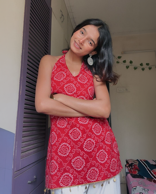 Such a pretty red Bandhani kurti Love the vibrant color and comfortable fabric
