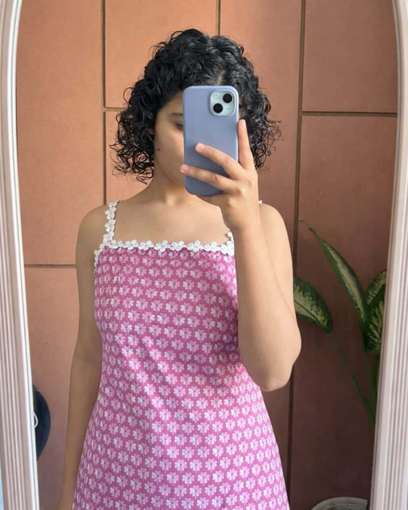 Baby Pink floral strap short kurti