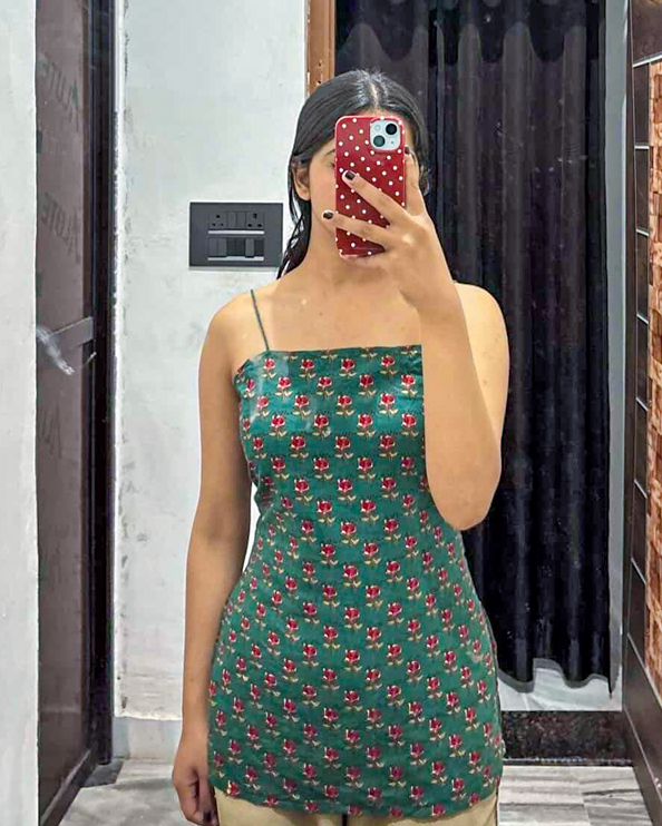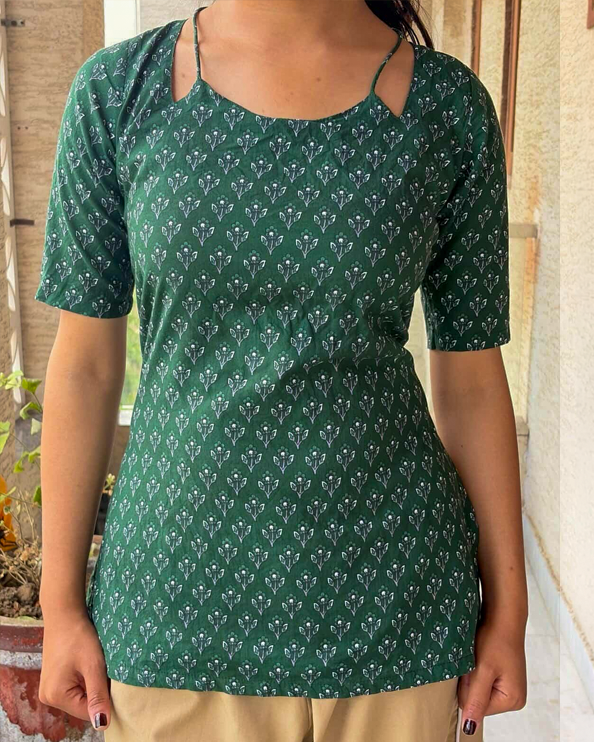 Green floral strap short kurti